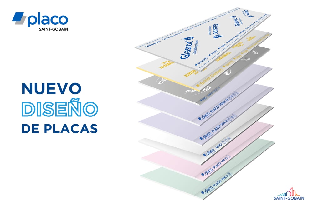Saint-Gobain Placo presenta el nuevo diseño de todas sus placas y palets, una evolución que refuerza la identificación del producto, facilita su reconocimiento tanto en almacén como en obra y pone en valor su pertenencia al portfolio de soluciones Saint-Gobain.
