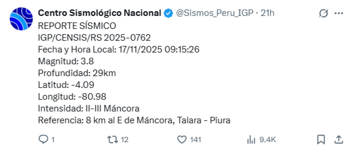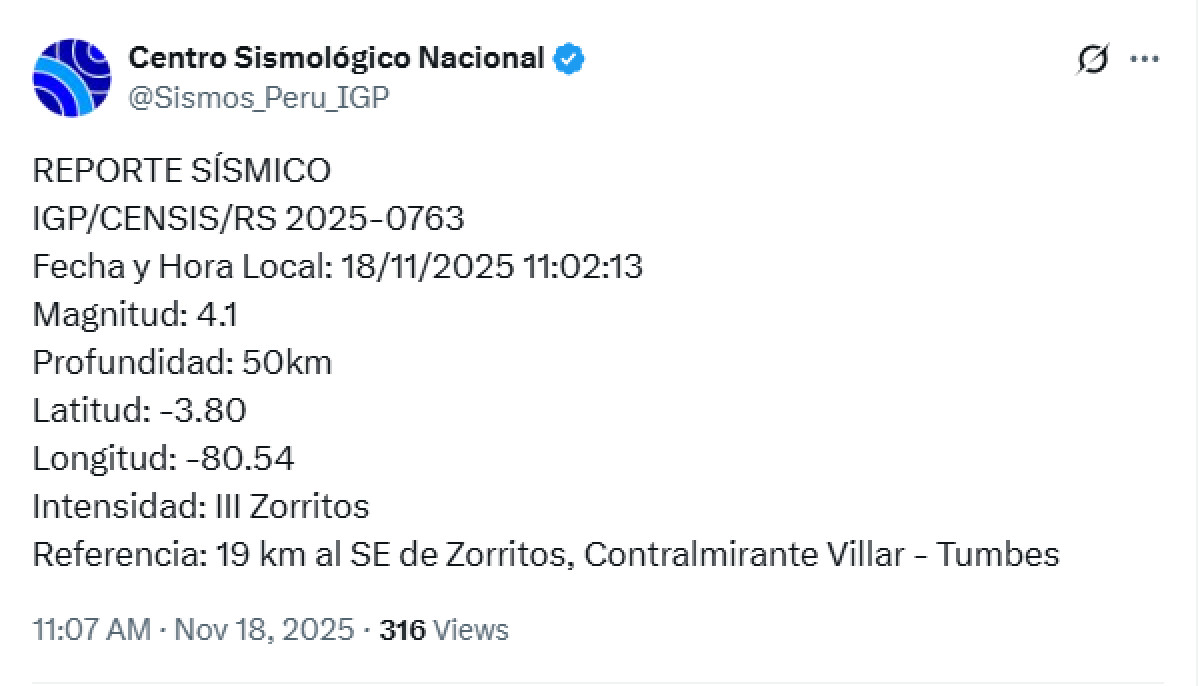 Temblor en Perú hoy, MARTES, 18 de noviembre del 2025: magnitud, epicentro y más sobre sismos recientes según IGP | último sismo en Lima, Ica, Callao y otras provincias | ATMP | Sociedad